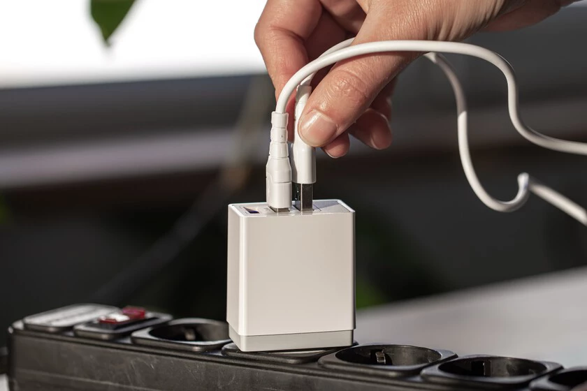 Los monitores externos también suman, aunque menos de lo que parece. Un monitor estándar consume entre 25 y 100 W dependiendo del tamaño y la tecnología. Cargar un iPhone o iPad añade otros 30 W, o 60 W si es un iPad con carga rápida. Todo esto es perfectamente asumible para una regleta. Pero es un suma y sigue.