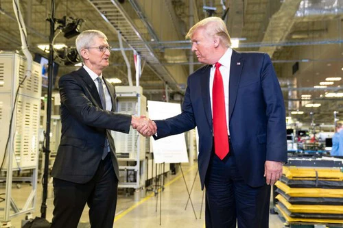Donald Trump y Tim Cook en la planta de fabricación de Apple en Austin, Texas