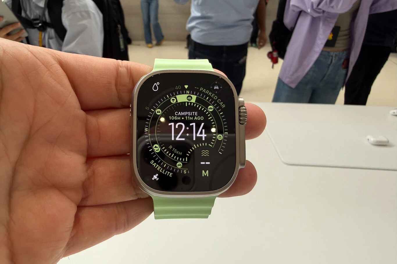 El Ultra 3, en cambio, juega en otra liga: es el reloj que impone presencia desde el primer momento. La pantalla es enorme y se nota mucho más aprovechada gracias a los bordes reducidos, lo que hace que sea más fácil consultar métricas mientras corres o simplemente echar un vistazo rápido a las notificaciones. Además, los nuevos ángulos de visión hacen que la información sea visible incluso cuando lo miras de lado, lo cual funciona genial incluso en pleno Steve Jobs Theater.
