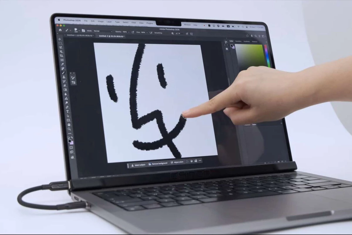 Lo curioso de este invento es cuándo llega, porque Mark Gurman y Ming-Chi Kuo no paran de decirnos que Apple ya está cocinando su propio MacBook Pro con pantalla táctil. Si las filtraciones sobre los futuros chips M6 y el rediseño son ciertas, a finales de este año que acabamos de estrenar deberíamos ver el primer Mac con panel OLED táctil.