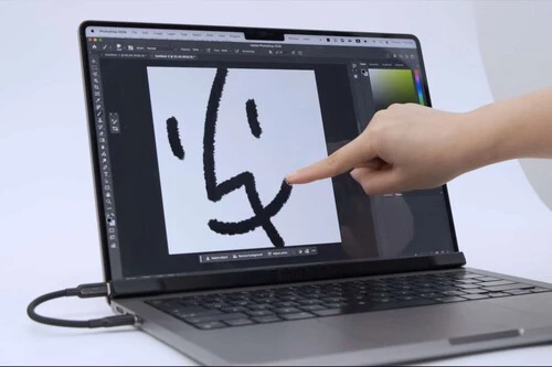 La idea detrás de Magic Screen ataca la necesidad de un Mac táctil desde la simplicidad. Es un panel que se alinea magnéticamente aprovechando los propios imanes que tu MacBook ya usa para saber cuándo cierras la tapa. Un simple "clac", conectas el cable USB-C y listo: tu Mac ya responde a tus dedos.