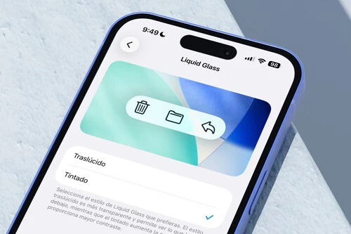 - Traslúcido: es el estilo "clásico" de Liquid Glass con transparencias en los botones y menús de navegación. El efecto cristal es más pronunciado.